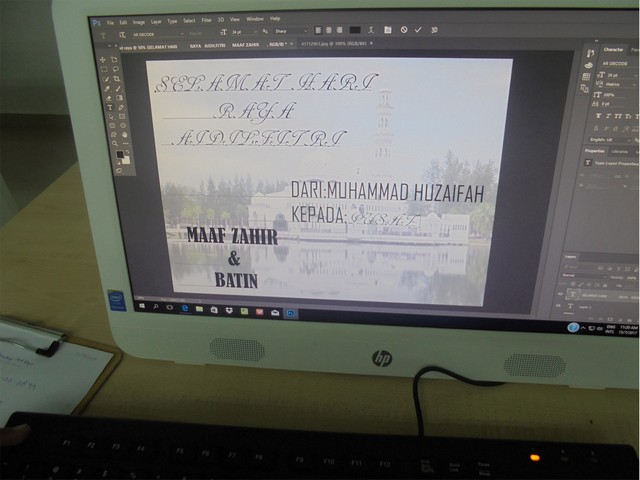 16 Julai 2017 | Aktiviti TerkiniPada 15 Julai 2017 telah diadakan kelas mereka kad hari raya untuk pelajar-pelajar dalam lingkungan 9-15 tahun. Mereka diberi toturial bagaimana untuk mengahislkan kad raya kreatif menggunakan aplikasi photoshop. Setelah diberikan toturial kad raya. Pelajar-pelajar perlu menghasilkan kad raya mereka mengikut kreativiti mereka sendiri. Kelas ini diadakan bagi meningkatkan lagi pengetahuan mereka terhadap penggunaan aplikasi photoshop.