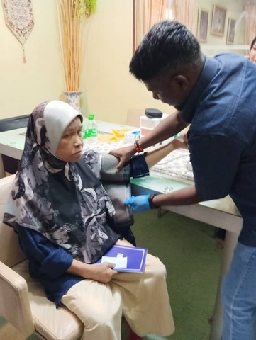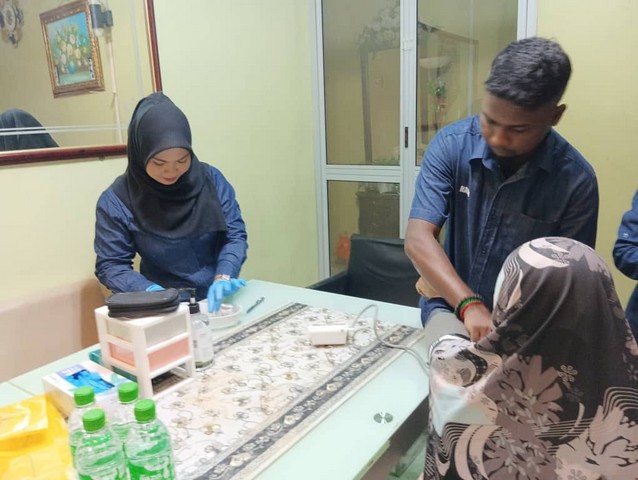 Sambil bubur dimasak beramai-ramai untuk diagihkan kepada seluruh penduduk, kami turut menjalankan saringan kesihatan seperti bacaan gula dalam darah, tekanan darah dan BMI. Tujuannya tak lain tak bukan, untuk bantu memantau tahap kesihatan komuniti kita.