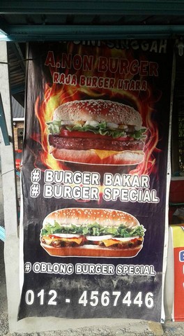 Kedai Burger ini Diusahakan Oleh Abg Non.Abg Non digelar sebagai Raja Burger Utara. Lokasi Kedai Burger ini di Sungai Kepar,Simpang 4 Semanggol. Waktu Operasi Kedai Burger abg Non Bermula Pukul 5.30 petang Hingga Pukul 11 malam..Jika Anda Melalui Jalan Dari Bagan Serai ke Taiping, Kedai Burger ini di Sebelah Kiri. Jika Anda Dari Taiping Ke Bagan Serai...Kedai Makan ini di Sebelah kanan...Anda Akan Nampak Banner Abg A.Non Burger.